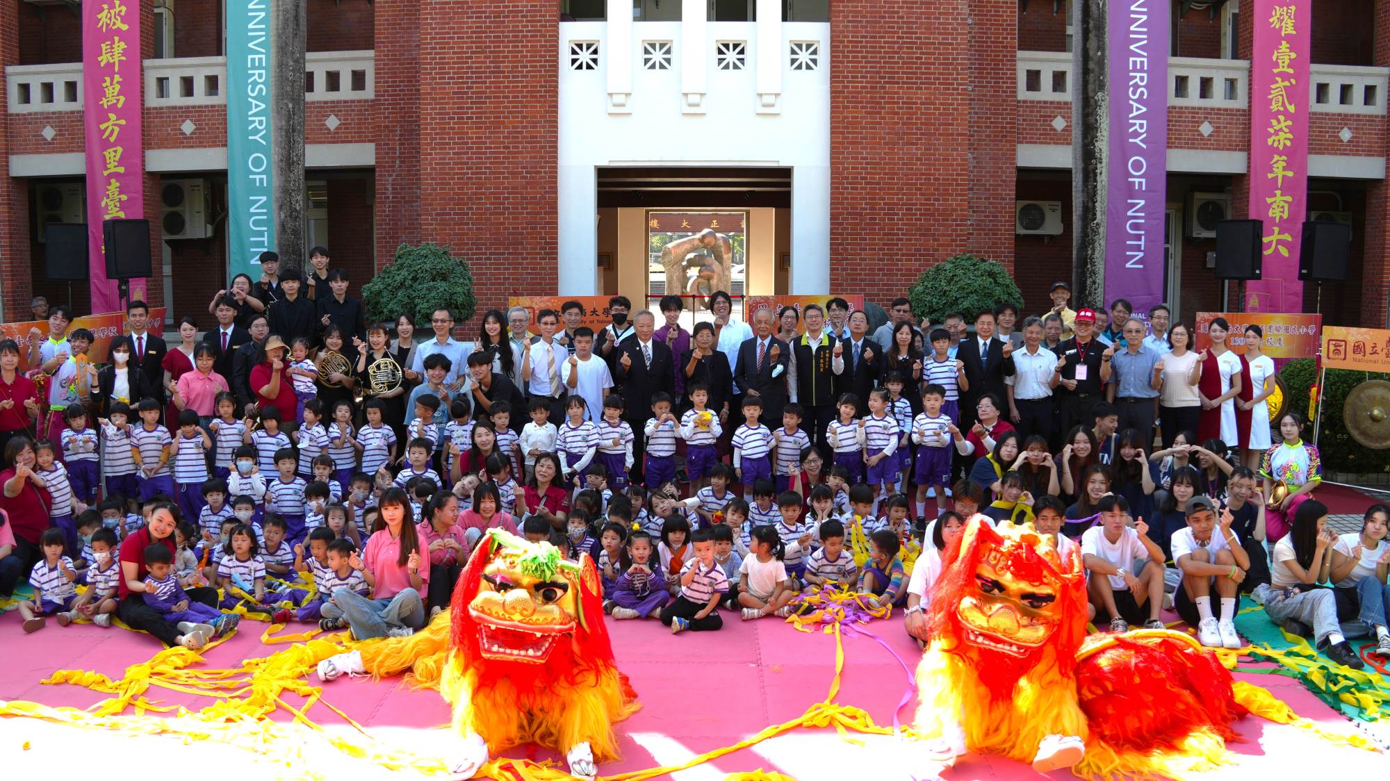 典禮由南大音樂系管樂團演奏揭開序幕,南大熱舞社以活力四射的舞蹈登場,瞬間帶動全場氛圍,附小幼兒園的小朋友接續以動感音樂呈現童趣舞蹈,成為典禮中最純真亮眼的畫面。附聰學生緊接帶來《男子漢一匹》與《阿帕次》演出,傳遞勇氣與熱情。壓軸的南大民俗體育隊以創意展演登場,融合戰鼓、扯鈴與北獅等多項技藝,以穩健的節奏與俐落的身法展現長年訓練的深厚實力,贏得全場熱烈掌聲。