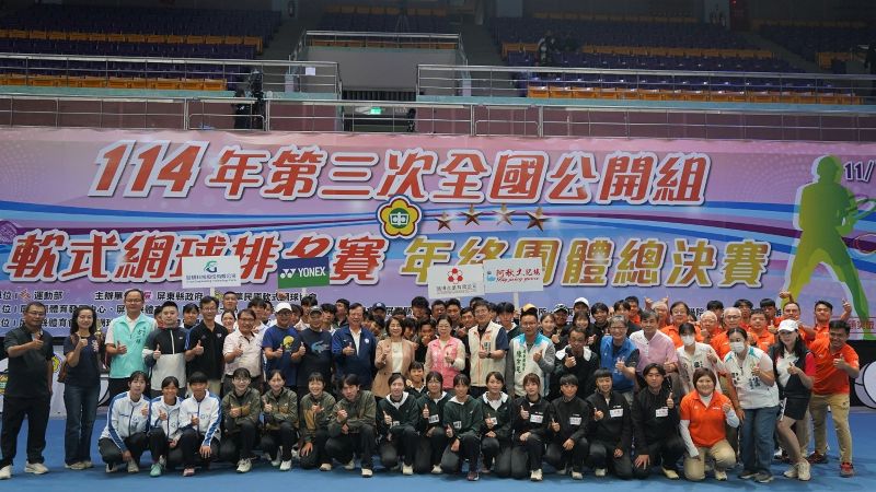 【記者何勁陞/屏東報導】 由屏東縣政府與中華民國軟式網球協會共同主辦的「114年第三次全國公開組軟式網球排名賽—年終團體總決賽」暨「114年培育優秀或具潛力運動選手計畫第四次軟式網球年終排名賽」,於 11 月 13 日至 16 日在屏東縣立體育館盛大舉行。(15)日上午舉行開幕典禮,縣長周春米到場為全國軟網好手加油打氣,為年度最重要的決賽賽事揭開序幕。