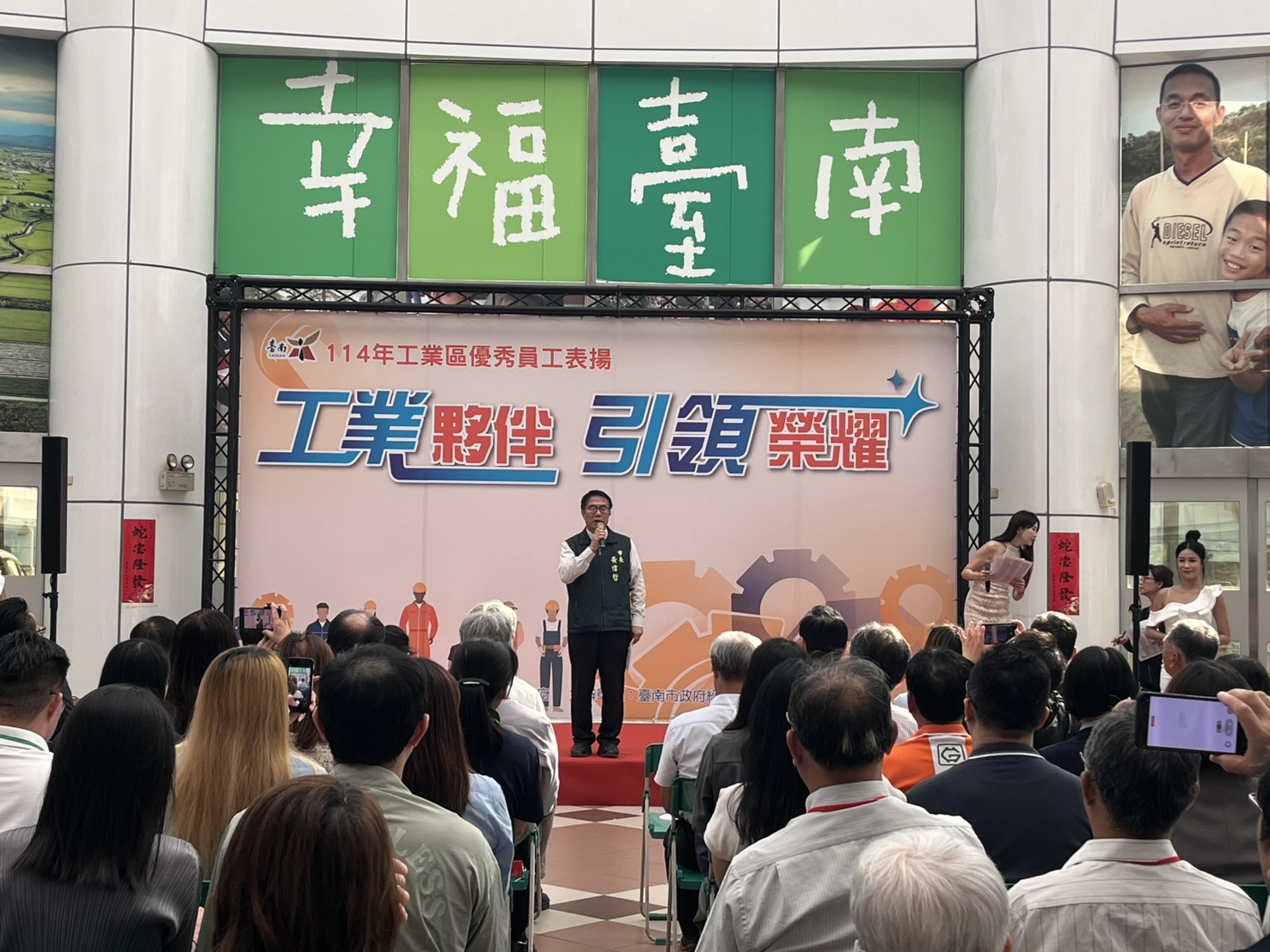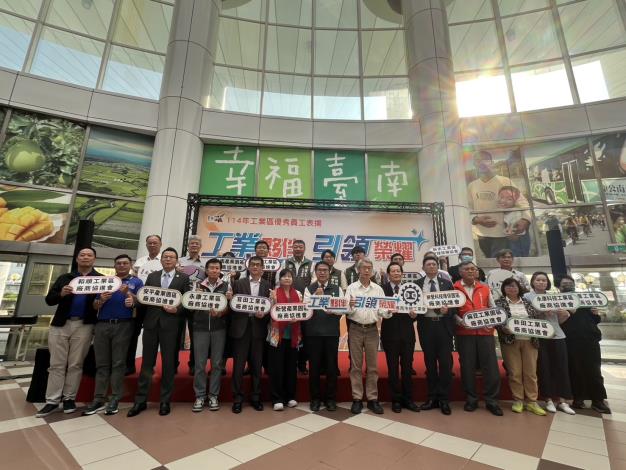 臺南市政府今(17)日於永華市政中心2樓中庭舉行114年臺南市工業區優秀員工表揚,市長黃偉哲出席時感謝本次得獎的資深管理人員及績優從業人員,肯定他們在專業技能、工作績效及敬業精神上得卓越表現。