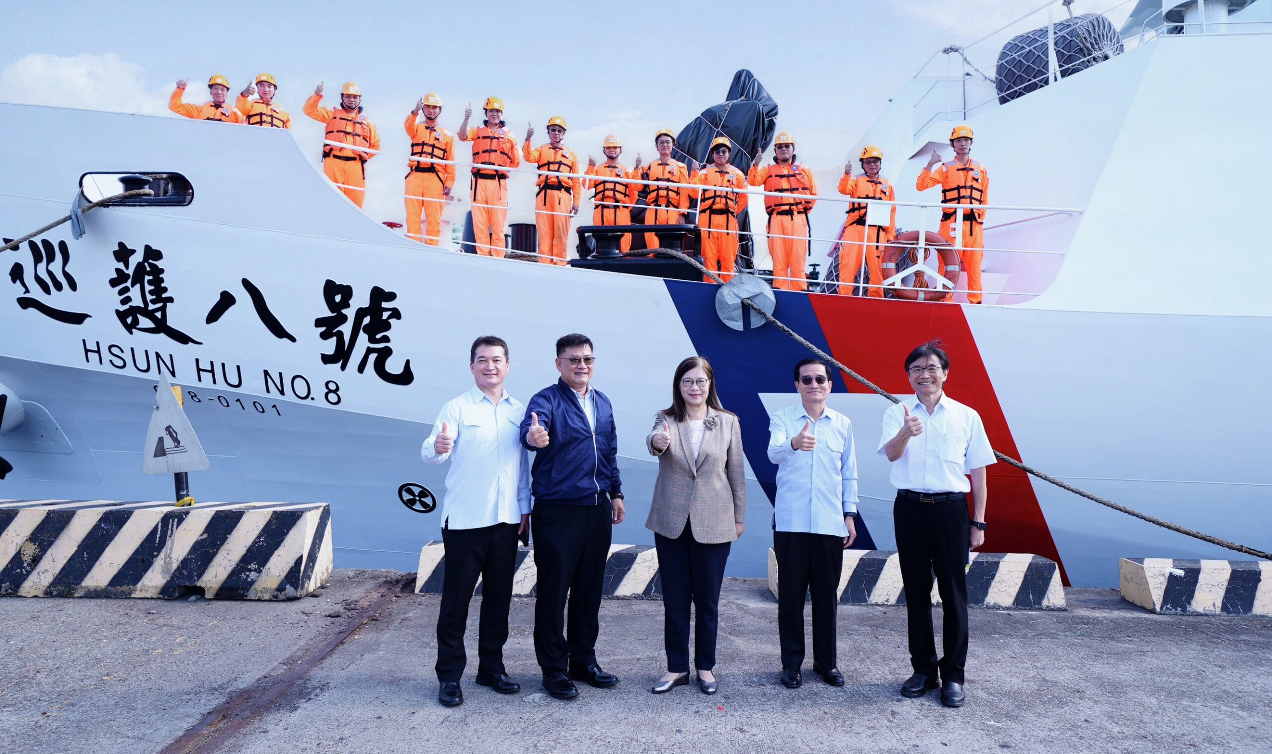 管主委表示,前2次航次因公未能親赴港口迎接,始終掛念在外執勤的同仁。今日能親眼見到「巡護八號」平安返航,心中倍感欣慰與感動。