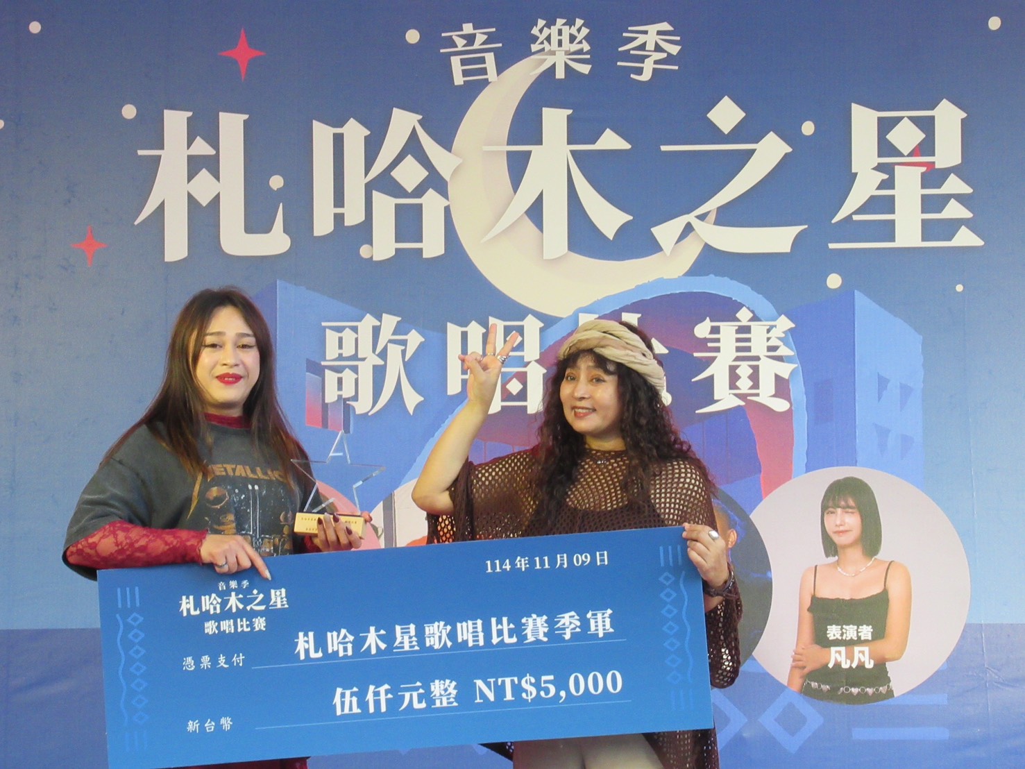 臺南市政府原住民族事務員會主委白惠蘭Salau Kaljimuran表示,本屆「札哈木之星」歌唱比賽歷經1個月的網路海選及初賽,由專業評審選出8位擁有深厚歌唱實力的優秀選手登上決賽舞台,為現場觀眾帶來一場精彩絕倫的表演。本屆札哈木之星冠軍得主為闇鴻麟、亞軍為俞愿群、季軍為陳思妍及殿軍買治佑,現場投票選出買治佑獲得最佳人氣獎,期待這些選手們在音樂領域持續努力,讓更多人聽見原住民的好聲音。