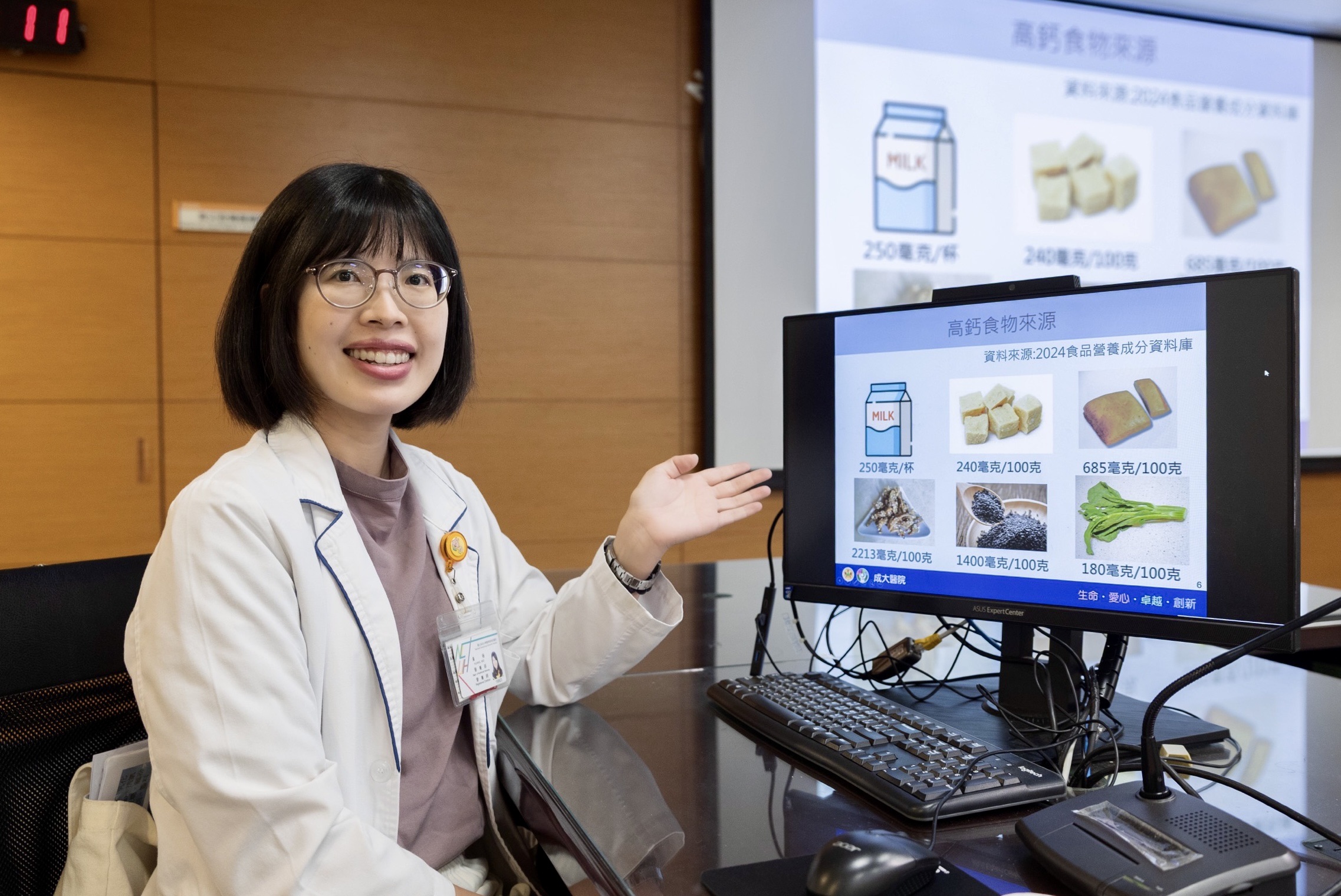 成大醫院營養師黃薇建議每天早晚一杯奶骨力滿分。(圖/成大醫院提供)