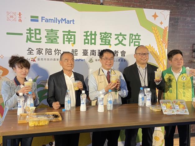 正值臺南鳳梨盛產季,今年是臺南400,臺南市政府規劃眾多活動,特與全家便利商店合作,嚴選臺南當季新鮮美味鳳梨推出「臺南400鳳梨截切鮮果盒」,即日起於全台「全家」開賣。今(15)日,市長黃偉哲現身全家便利商店,與全家便利商店生鮮現做調理部生鮮採購資深經理陳友和、福和生鮮農產股份有限公司董事長邱進福、山上區農會推廣部主任田安妃、農業局副局長陳仲杰以及李啟維議員、陳亭妃立委/陳怡珍議員代表,一同利用便利商店方便取得的產品DIY製作「臺南甜-鳳梨可爾必思」,創意美味輕鬆在手!市長黃偉哲表示歡迎民眾「全家」一起品嘗「臺南甜」,享受”很慢”(現採)的臺南味。