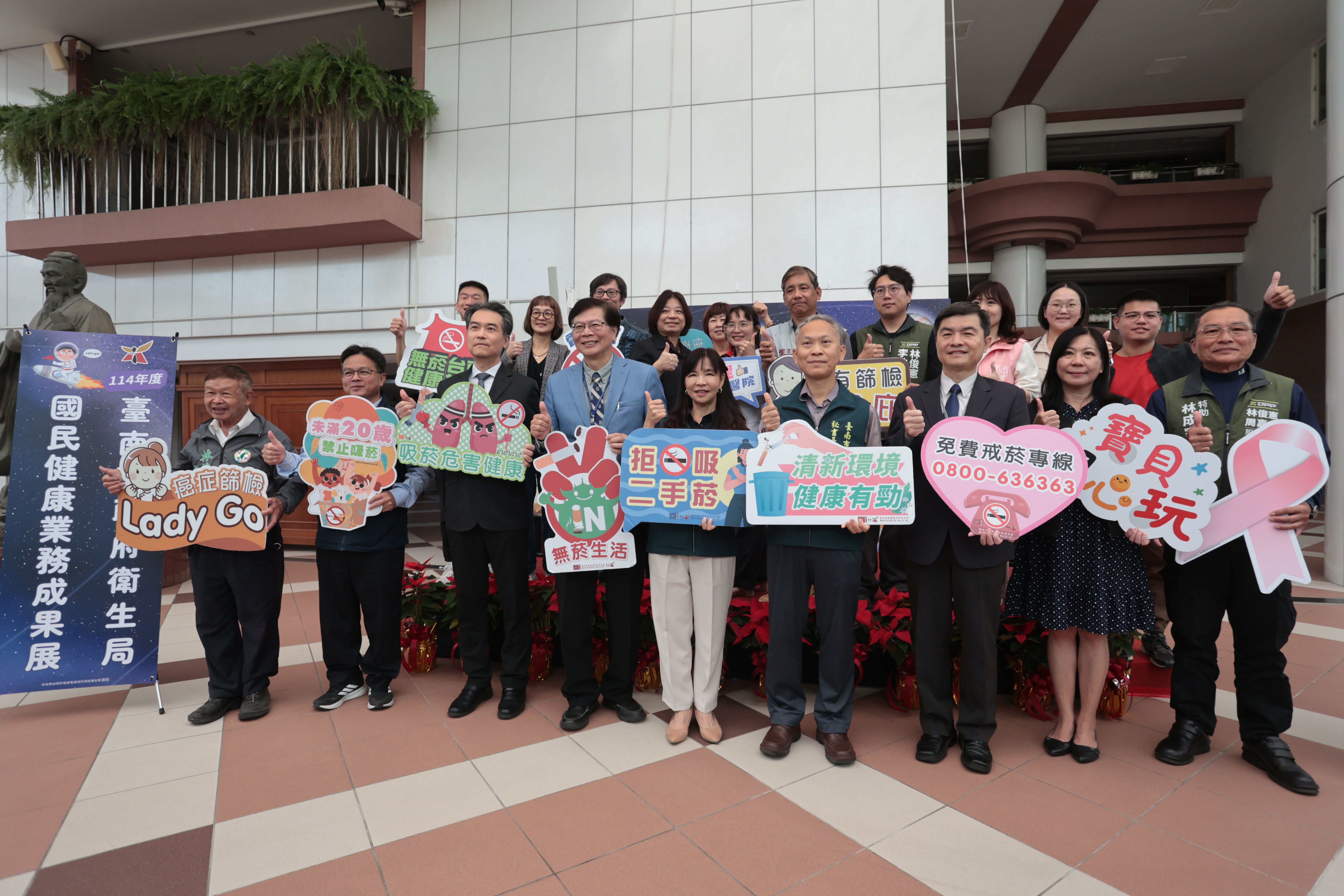 臺南市政府衛生局於12月15日至20日在永華市政中心二樓中庭廣場舉辦「114年度國民健康業務成果展」,以「臺南健康宇宙城」為主題盛大登場。宇宙象徵健康照護服務的範圍廣大,以不一樣的星球代表不同單位,在健康服務的多元面向,讓市民以輕鬆方式理解公共衛生政策。