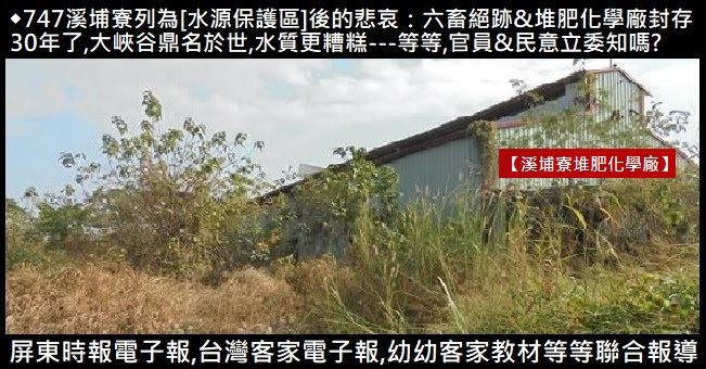 ◆747溪埔寮列為[水源保護區]後的悲哀:六畜絕跡& 堆肥化學廠封存30年了,大峽谷鼎名於世,水質更糟糕— 等等,官員&民意立委知嗎?