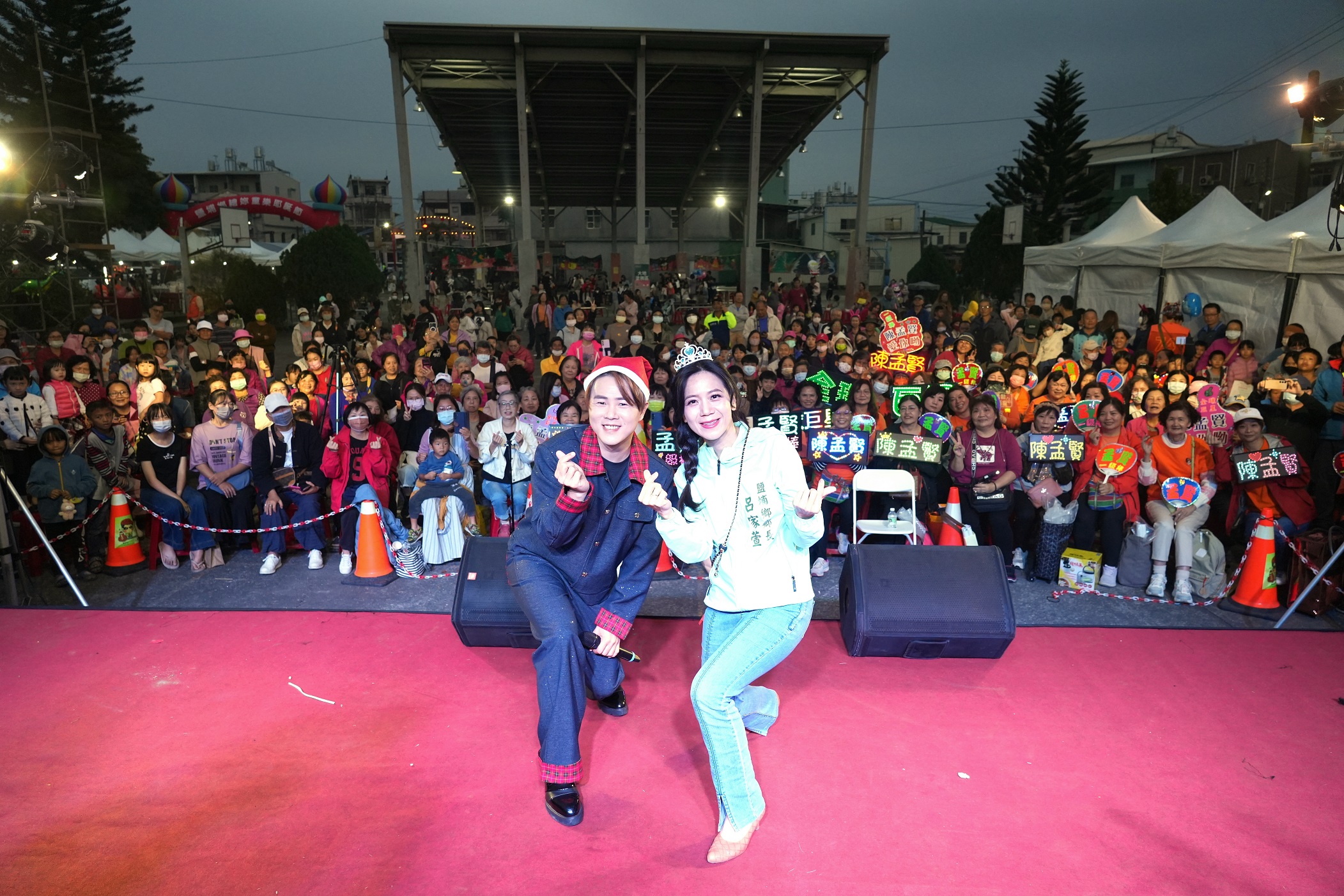 現場透過引進大型下雪機具,營造出南台灣少見的銀白視覺景觀,搭配鄉長呂家萱化身冰雪角色 Elsa 驚喜現身,攜手波力,讓鹽埔鄉瞬間化為夢幻節慶場景,吸引超過2000組家庭共襄盛舉。
