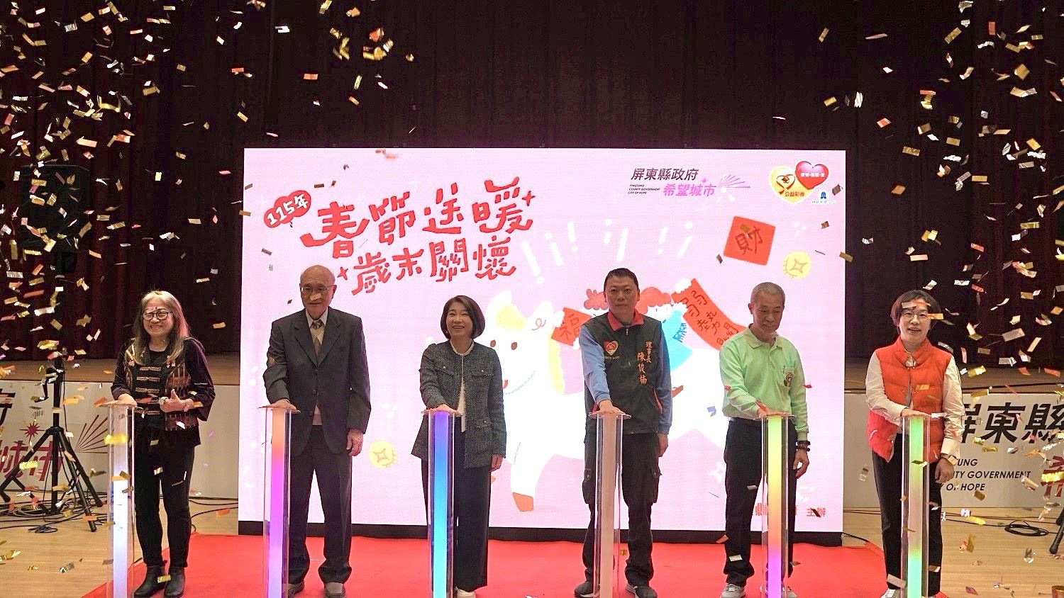 活動中,周縣長也特別感謝多年來長期支持春節送暖行動的夥伴,包括屏東都城隍廟、永揚消防安全設備股份有限公司董事長張來川、社團法人屏東縣慈善團體聯合協會、屏東縣同心聯誼慈善會、慧光得亞利企業社及劉宏輝大德,攜手縣府關懷弱勢長達10年,為屏東注入穩定而溫暖的社會支持力量。