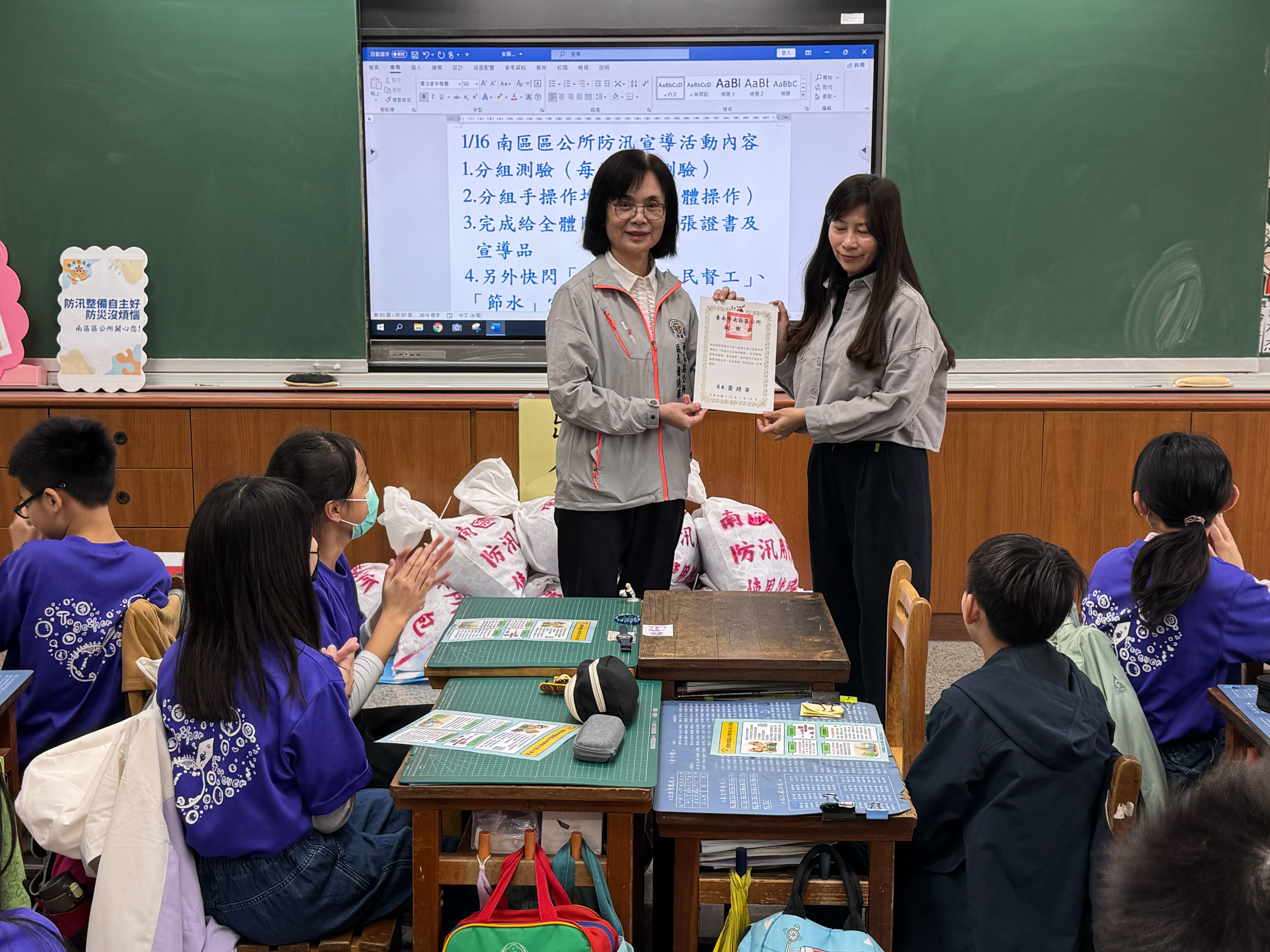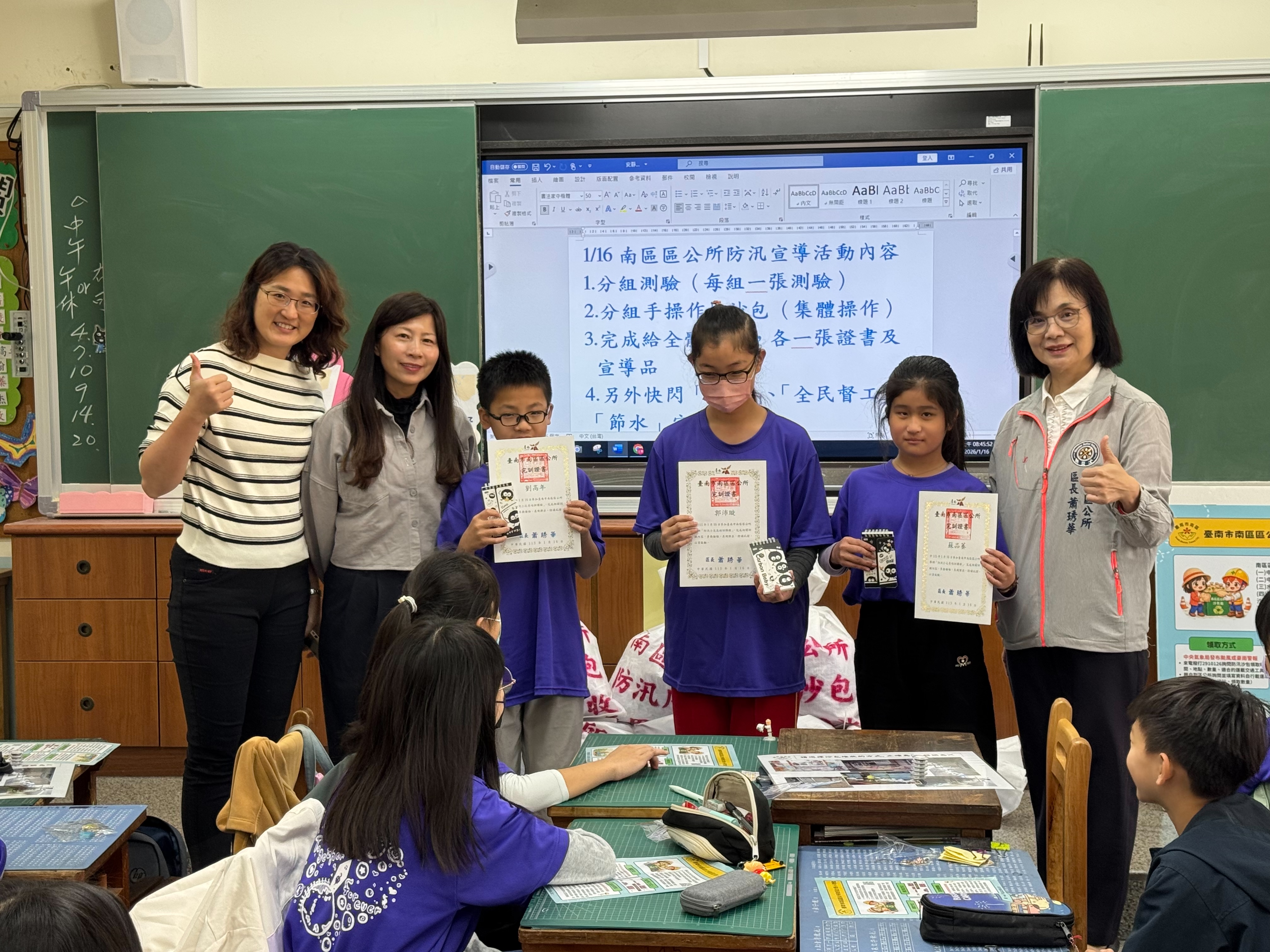 南區蕭琇華區長表示,透過「防汛小尖兵」訓練,不僅可以培養學童的防災意識,讓學子從「旁觀者」轉變為家庭防汛的「參與者」,更能增進「全民防汛,從小做起」的社區共識。接續第一場的成功開端,後續兩場將於灣裡活動中心及開南里活動中心接力登場,邀請親子家庭共同參與,於互動中學習防汛技能。