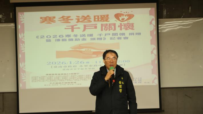 年節歲末,暖意先行。「財團法人佳尼特教育基金會」為鼓勵偏鄉學校藝陣薪傳並關懷邊緣戶年節生活,今(26)日上午在南市府東哲廳舉行「2026歲末送暖千戶關懷捐贈暨傳藝獎助金頒贈」儀式,臺南市長黃偉哲出席代表受贈,並致贈佳尼特教育基金會董事長莊住維感謝狀,教育局、民政局及社會局等首長、受贈學校校長及區長均出席共襄盛舉。