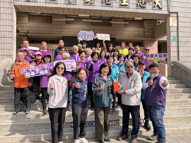 社會局自105年起持續培力在地社區及鄰里組織主動參與,114年共有50個社區組織參與,其中包括5個領航社區、17個宣導社區及28個跨步社區,其中南區大恩社區為領航社區,本次代表南市參與衛生福利部114年紫絲帶社區初級預防認證獎勵計畫,榮獲1朵紫絲帶認證,為感謝社區長期投入防暴工作,社會局郭乃文局長代表巿長黃偉哲親自到場張貼紅榜祝賀,南區公所蕭琇華區長及巿議員林美燕本人亦出席參與,鼓舞社區持續往2朵紫絲帶認證邁進。