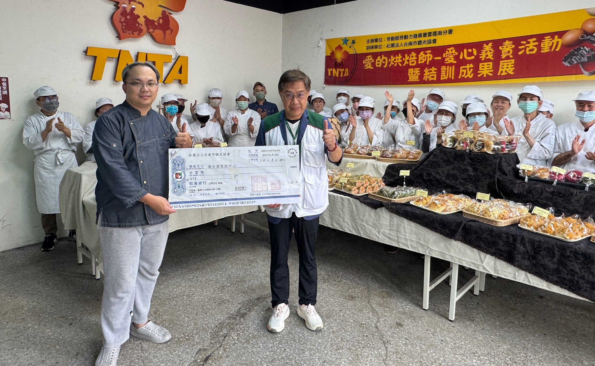 由勞動部勞動力發展署雲嘉南分署主辦、社團法人台南市觀光協會承辦的「2026愛的烘焙師-職訓足感心成果發表暨麵包義賣」活動,近日於台南市觀光協會溫馨登場,現場展示學員訓練成果,並透過義賣行動實踐社會關懷,獲得民眾熱烈響應,活動現場氣氛溫馨熱絡,民眾在品嚐麵包的同時,也紛紛肯定學員的努力與成長。