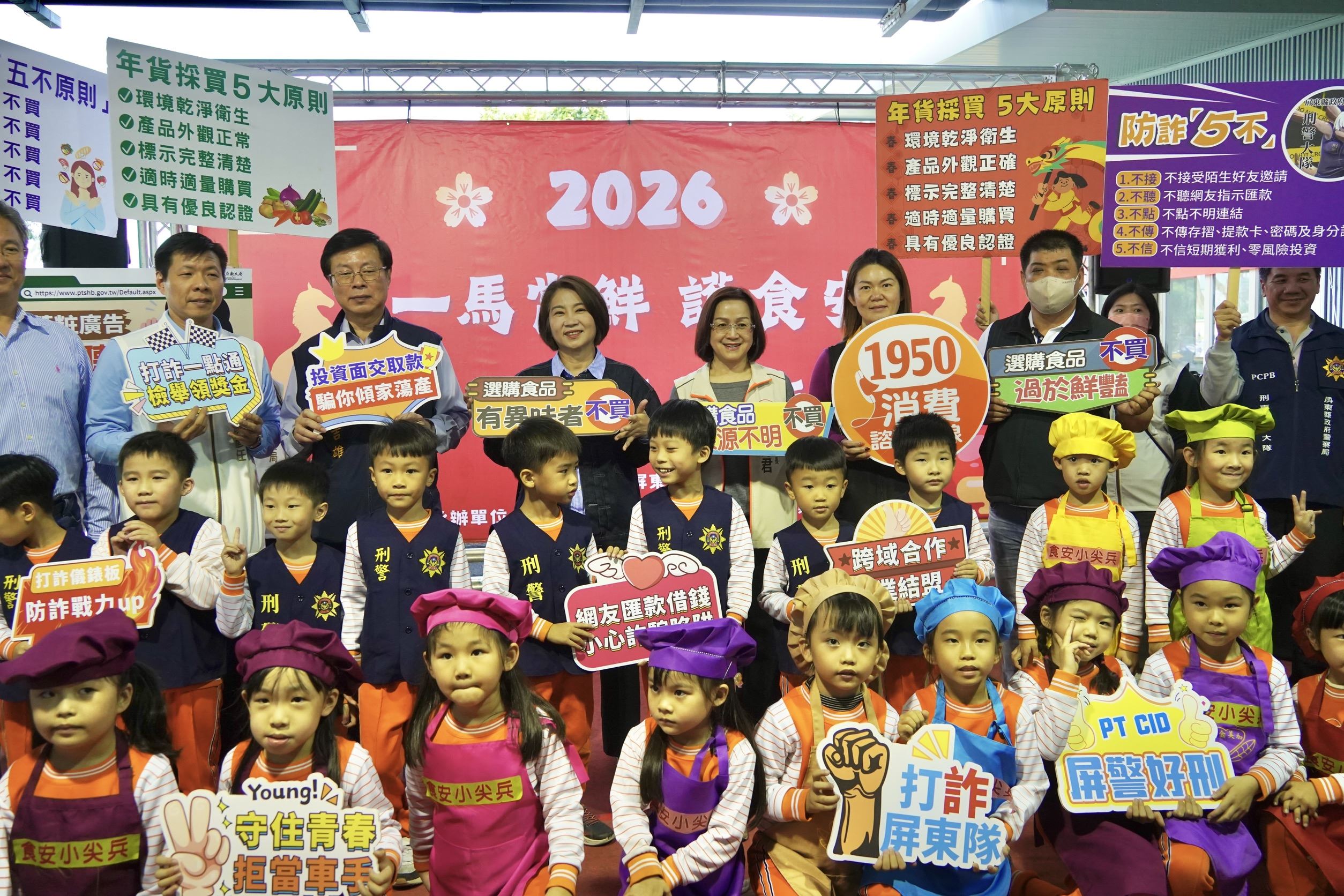 【記者戴英薇/屏東報導】 農曆春節將至,為保障鄉親食品安全及守護民眾荷包,屏東縣長周春米率縣府衛生局、警察局及消保官團隊,前往屏東市黃昏市場宣導,現場透過食安情境與常見詐騙手法,提醒民眾注意食品安全及防詐騙小撇步,呼籲鄉親們買得安心、吃得放心、守住紅包,才能安心過好年!