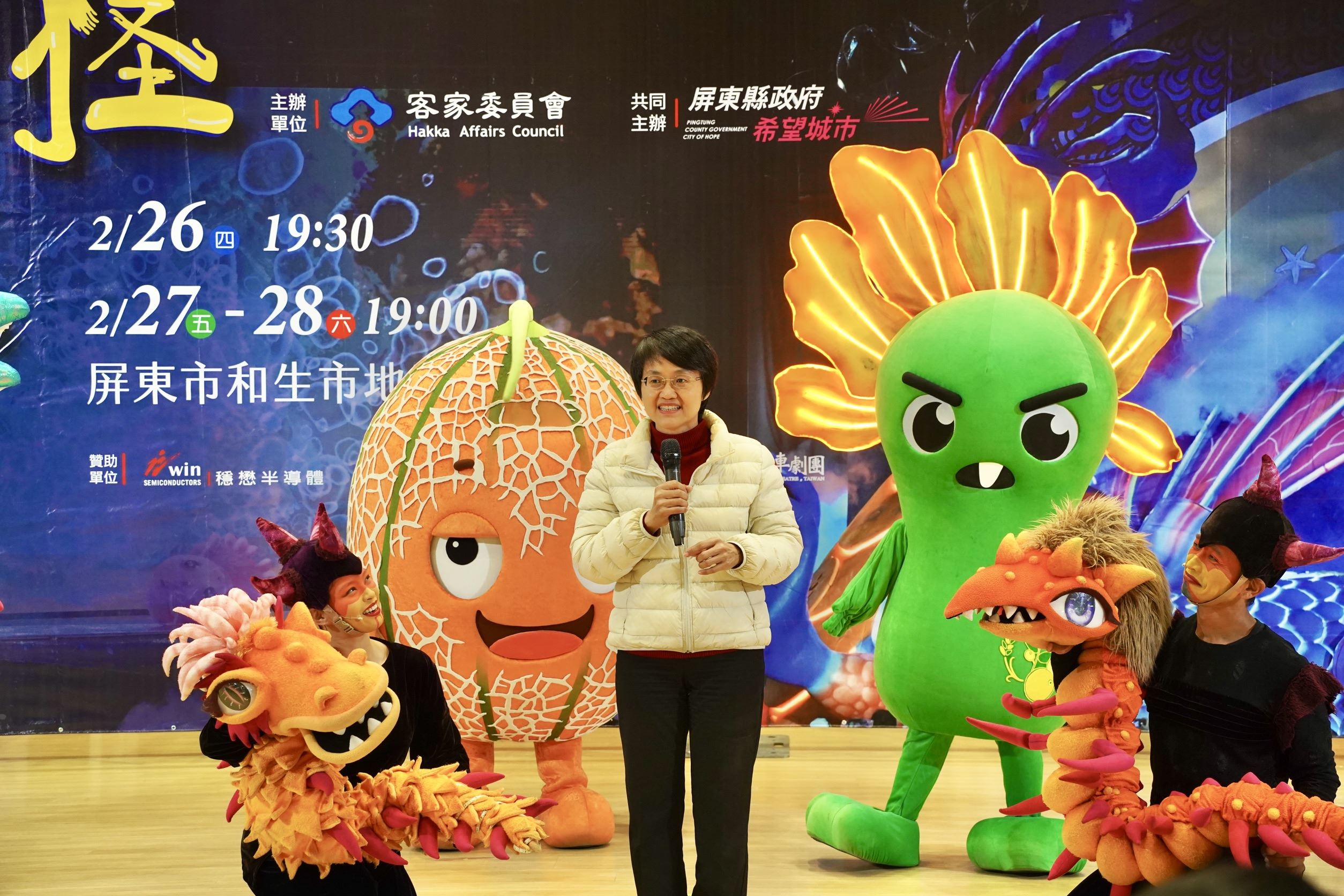 客家委員會主委古秀妃表示,與紙風車劇團合作16年來,《燈怪》不論在音樂、戲劇與人員規模上,皆是歷年來最大製作,因此,在前期會勘合適場地的過程中,感謝周縣長率領的縣府團隊大力協助與支持,她說,這不僅是送給鄉親最好的新春禮物,更希望透過親子劇場,讓大小朋友們更加親近客家語言與文化。