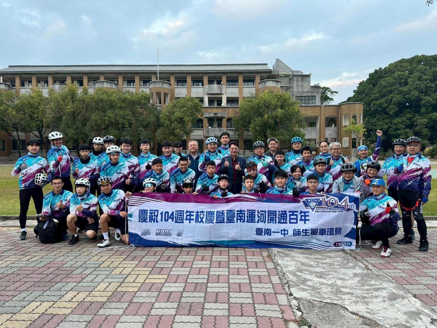 台南一中「104週年校慶師生單車環島校際交流」,由校長廖財固領軍,45位師生與校友吳榮彬董事長、林健正教授與王建仁牙醫師更全程參與,組成的環島車隊,展現校友與母校緊密連結的精神,於2月4日清晨出發,歷經9天、近千公里的騎乘挑戰,於2月12日平安返抵校門,這場結合體能挑戰、生命教育與校際交流的單車環島行,已成為台南一中重要傳統,亦是學生邁向成熟的重要里程碑。