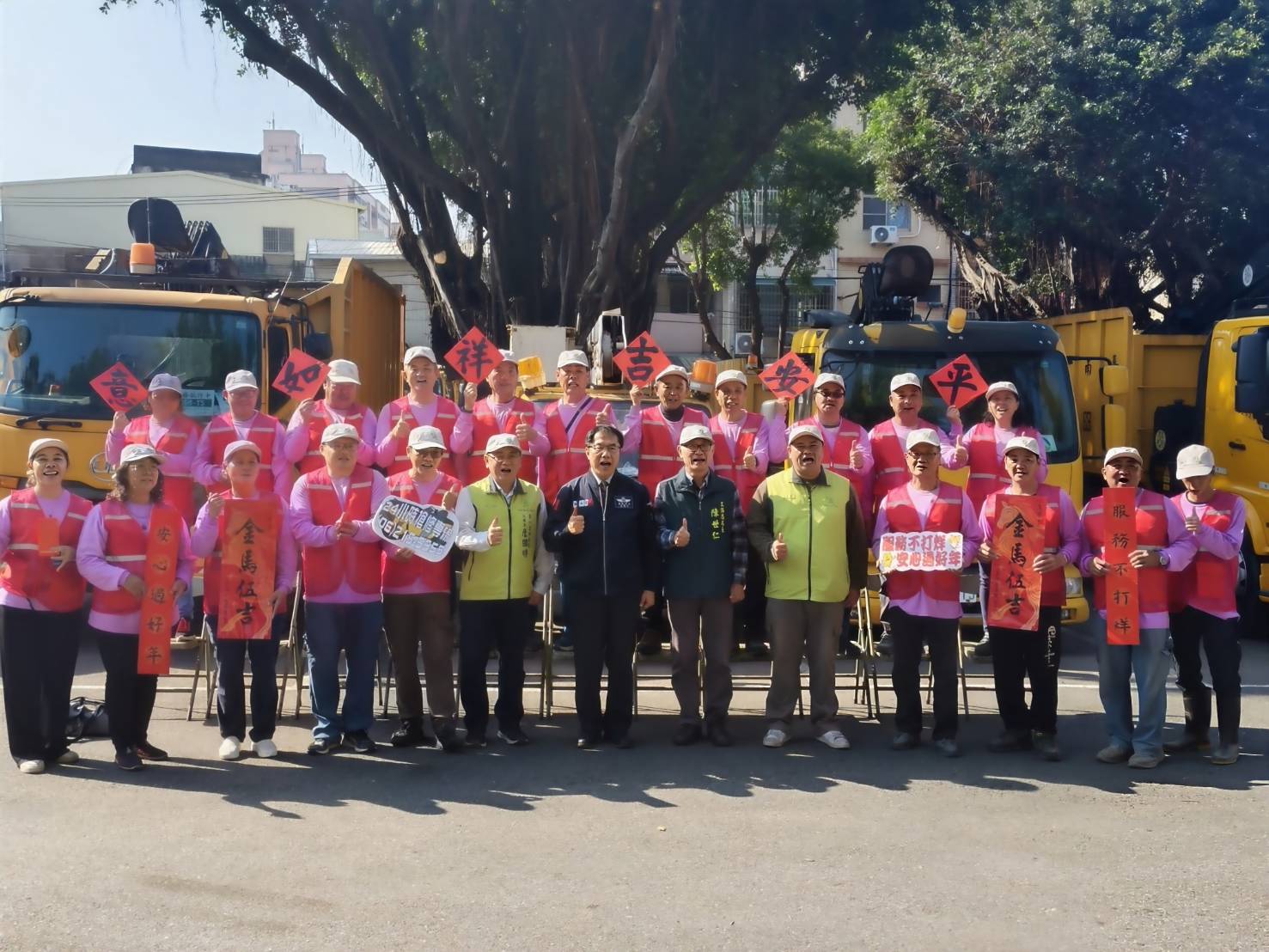 工務局第一線基層人員的工作是道路修補、整理公園及行道樹環境,常年受到夏季的酷曬悶熱、冬天的寒冷刺骨,過去一年面對楠西大地震、丹娜絲風災及支援花蓮救災,他們仍無畏風雨、無怨無悔的付出。在除夕封關前,黃市長由陳世仁局長陪同,特別前往第一工務大隊北門辦公室發紅包。嘉勉慰勞。