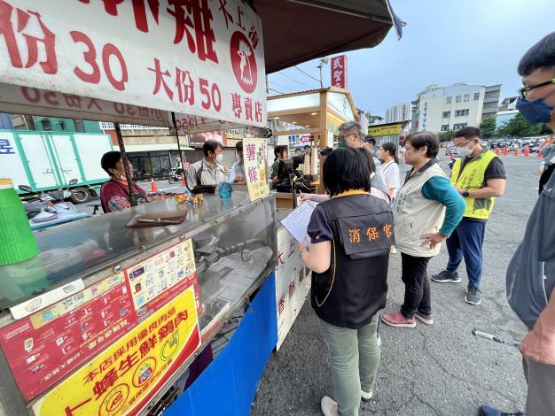 昨(29)日並至本市中西區武聖夜市進行查核,實地抽查攤販食品、環境衛生、價格資訊揭露,廢食用油回收等情形。迄至昨(29)日已執行22場次,查核業者店家包括台南大飯店、好市多量販店、三井outlet與富盛號碗粿、文章牛肉湯,及玉井芒果冰鋪等。目前查核結果,大多數作業場所及用餐環境符合食品良好衛生規範準則(GHP)相關規範,至少數幾家有食材、容器直接放置地面、牛肉食材未標明產地、作業區域局部環境應加強清潔之缺失,均由衛生局於現場輔導業者立即改善。