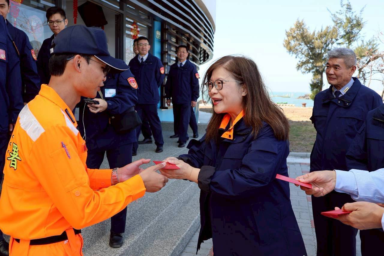 海洋委員會管碧玲主任委員於致詞時表示,國際情勢巨變,我們將推行海空一體、精銳海巡計畫,未來將有更完整的裝備、系統、科技輔助。海巡署在第一線迎戰海防摩擦,必須以印太戰略聯盟的力量,才能產生對抗底氣,進而避免戰爭。今逢小年夜此一闔家團聚的溫馨時刻,海巡同仁依然堅守在各自的崗位上,感謝總統在年節重要時刻親臨基層,對海巡英雄們的關懷備至,讓基層同仁備感溫暖。