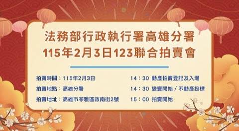 多年來,高雄分署持續透過網站、社群平台發布拍賣訊息,提升資訊透明度。相關影片與照片也同步公開,讓民眾清楚了解標的現況與程序規範,實踐陽光法拍精神。