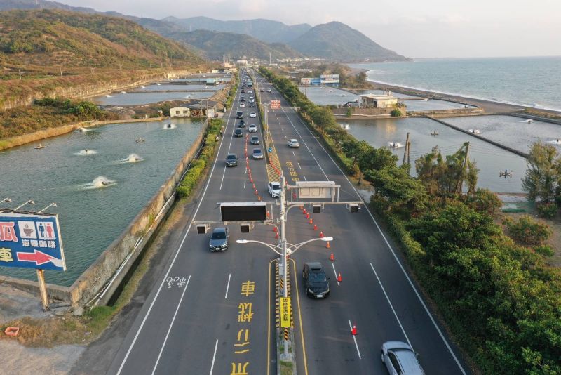 五、空拍機監控車流狀態:結合南工分局出動空拍機,嚴密監控臺1線及臺9線沿線車流,即時派遣警力快速疏導車多壅塞路段。