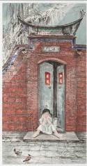 • 臺南市政府民治市政中心藝文展-陳妃婷中西畫創作個展-08-發呆的女孩(水墨)