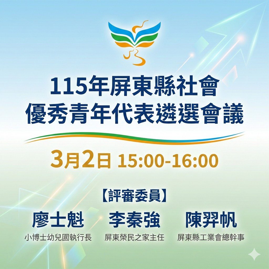 屏東縣團委會表示,青年是社會進步的重要力量,本次獲選青年在各自專業領域發光發熱,並長期投入公益服務與社會關懷,足為青年學子楷模。115年青年節表揚大會訂於3月28日隆重舉行,屆時將公開表彰本縣社會優秀青年及各級學生優秀青年,透過典禮儀式展現青年正向能量,為屏東注入持續向前的動力。