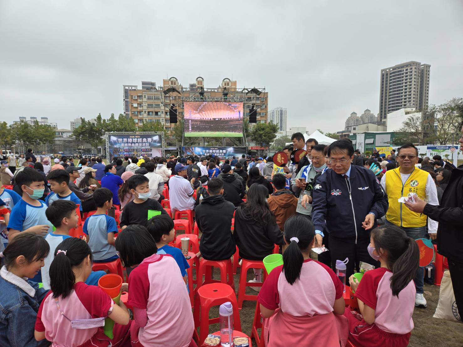 「2026WBC世界棒球經典賽」今(5)日熱血開打,中華隊迎戰澳洲隊,臺南市政府體育局於3月5日至3月8日於永華市政中心西側廣場及南瀛綠都心公園同步辦理戶外轉播活動,吸引許多球迷提前到場觀賽。黃偉哲市長也蒞臨活動現場,與民眾一起為中華隊加油!隨著賽事開始,大螢幕前不時傳出加油聲與歡呼聲,球迷手持加油棒以及各種應援小物,一同為中華隊集氣,現場氣氛熱鬧沸騰。
