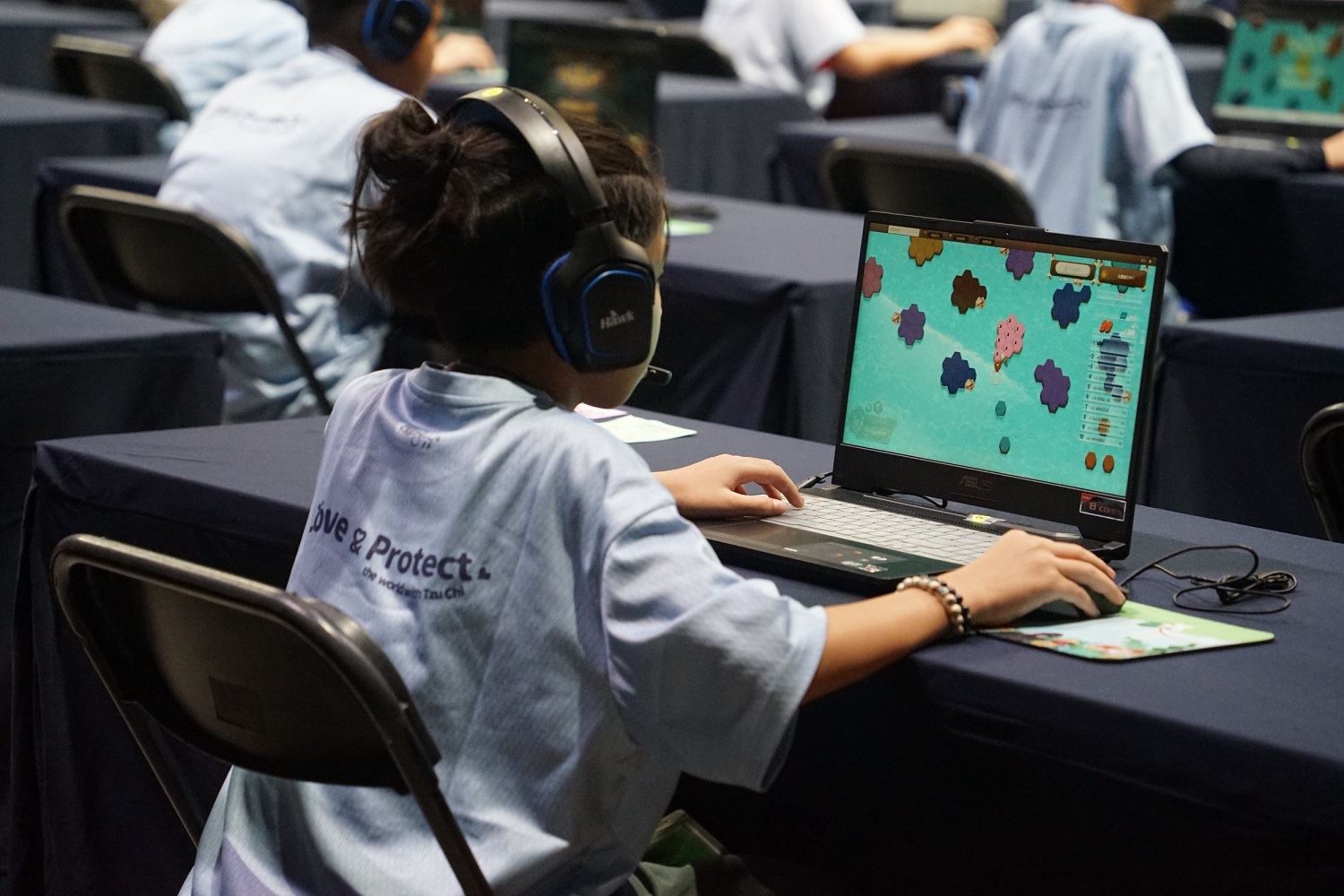 館內賽事緊扣「與你同在、減塑有愛」的核心主軸,採用深受學子青睞的PaGamO線上學習平台展開激烈對戰。競賽題目深度整合了減塑行動、氣候變遷、水資源保護、土石流防治及防災應變等跨領域知識,學生在「攻城掠地」的策略遊戲中,將原本艱澀的知識轉化為核心素養,實踐知識生活化。賽事不僅是學習成果的驗證,最終脫穎而出的前十名佼佼者,更將代表屏東縣挺進「國際盃全球總決賽」,與來自全球的頂尖好手同台競技,展現屏東學子的實力。