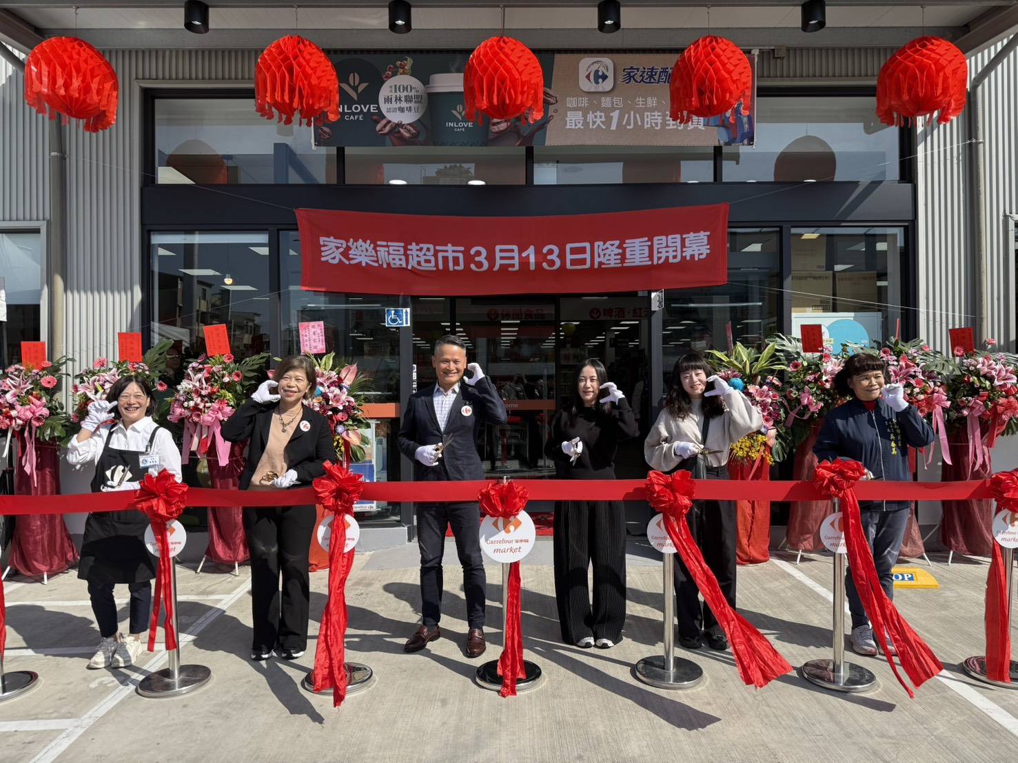 家樂福超市文賢店由家樂福營運長吳國憲、超市事業群總監陳鳳連、文賢店店長黃秀美、地主以及當地文元里里長吳春美等嘉賓共同參與剪綵下,正式宣佈開幕!