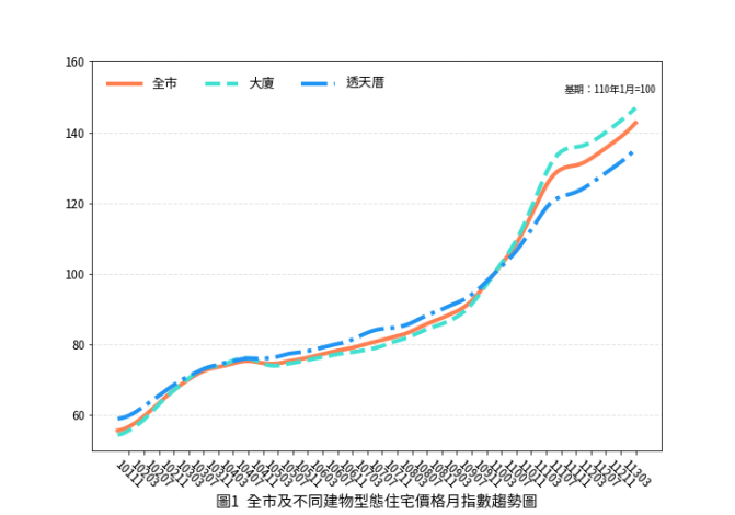 地政局局長陳淑美表示,113年3月國內經濟景氣信號分數為30分,維持綠燈,與前期(2月)相比小幅上升1分,可見113年第1季總體經濟景氣仍呈現穩定上升跡象。本期住宅價格指數微幅上漲,而建物買賣移轉棟數方面,全市3月建物移轉棟數共計2,894棟,交易量較前期(1492棟)大幅增加93.97%,並以新成屋完工住宅大樓交易量增加較多,主要係因前期適逢農曆春節期間,交易量較少。綜觀今年度各月建物買賣移轉棟數雖有變化,然在市場剛性需求仍穩定支撐下,買氣也持續加溫,整體買賣棟數較去年同期(112年3月)大幅增加32.69%,住宅市場呈現價量俱穩的格局。