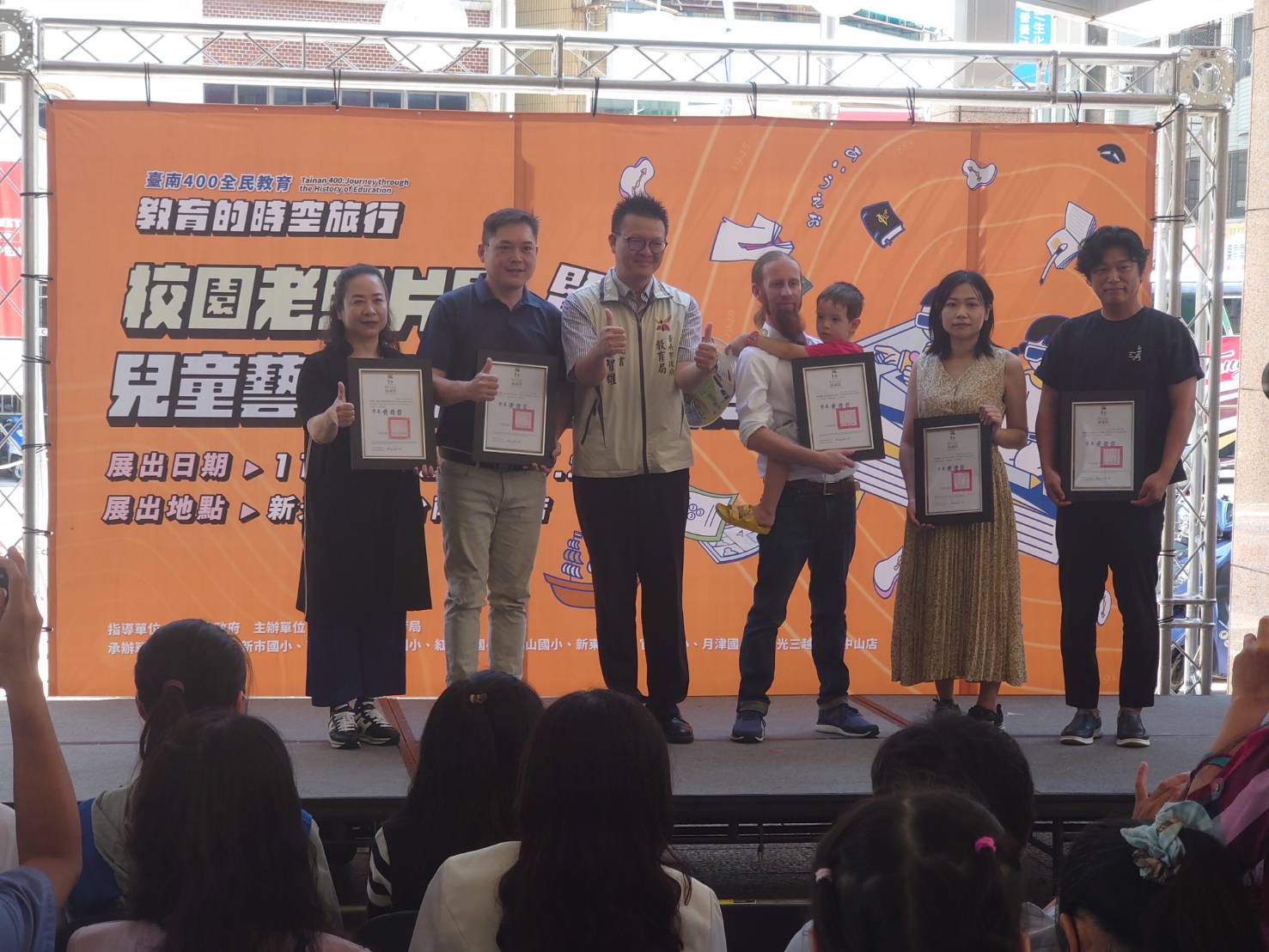 教育局表示,感謝新市、南安、大竹、新東、月津、官田、新山、紅瓦厝等8所國小,共同推出校園老照片及兒童藝術創作,展示臺南400的多元藝術教育力;也感謝新光三越百貨的大力支持,促使教育與業界的緊密合作,展現臺南400的文化與藝術豐富性。