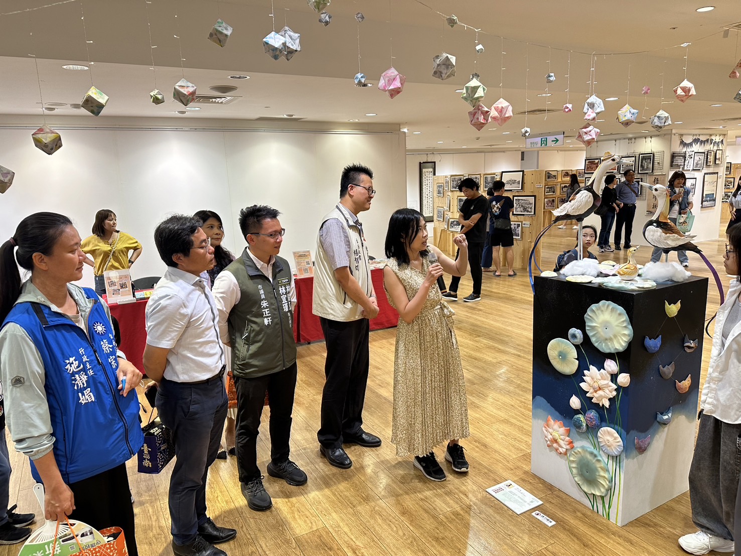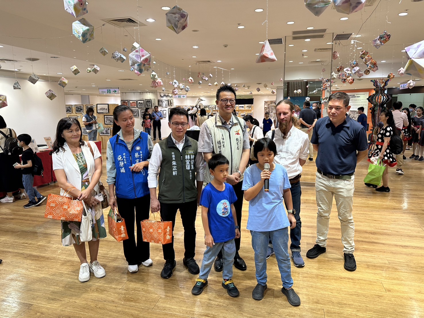 7月7日的特展開幕典禮,特別安排國際藝術家與小小藝術創作家共同合力解說創作理念,以多國語言-英語、韓語、日語及中文向楊智雄主任秘書及與會嘉賓說明,不僅藝術創作國際化,說明內容更多語化,這是呈現臺南400多元文化與藝術融合的最佳寫照。此外,每件作品附有雙語語音導覽,英語、中文任意選,參觀民眾只要掃瞄Q-Rode就可聽閱解說內容,透過AI科技導覽語音陪伴觀賞者沉浸藝術中。
