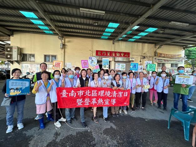 北區區公所今(6)日上午假北門里及北華里辦理「7月份環境清潔日」活動,由北區區長潘寶淑率領區公所同仁、北門里里長、北華里里長,與環保志義工們共同前往里內公共區域進行環境清掃、撿菸蒂及積水容器清除,為里內環境維護盡心力。