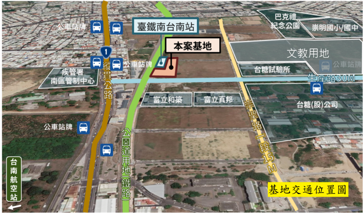 地政局長陳淑美表示,本案位於臺南市東區之南臺南站副都心第一期區段徵收開發區,區內有以生態聞名的巴克禮公園第二期,周邊亦包含文化中心、臺南市立醫院、崇德市場商圈等便利生活機能,開發區內及周邊持續有大型建案開發建築,此外還有台糖新都心循環宅、新都安居社會住宅、臺南捷運紅線與藍線等重大建設。本案招商基地可銜接南臺南車站、及先進運輸系統車站通廊,可望引入通勤人潮,另本案要求廠商無償提供市府托嬰中心空間,增加公益性,托育家長衍生的商業需求亦可和本基地商業機能互相呼應,未來前景可期。