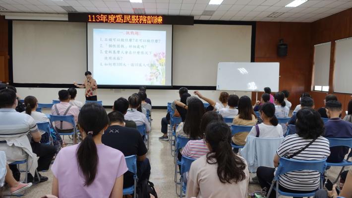 陳主任在課堂中透過幽默詼諧的方式講授如何培養職場上受人歡迎的服務態度、增進「傾聽及說話」的藝術、高EQ的溝通協調等,並分享多年來接觸的案例與經驗,以及如何應對及調適自我的服務心態,參與同仁均感受益良多,將今日所學實際運用在第一線為民服務工作與平時業務處理上,以提升民眾滿意度及行政效率。