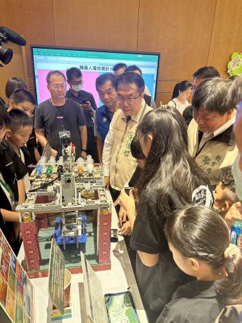 教育局長鄭新輝局長表示,本次計有30隊同學們積極參與擂台賽,比賽過程張力十足,令人熱血沸騰;在競爭刺激的氛圍下,不論是使用會場提供的機器人或是自行帶來的機器人,參賽學生沉穩進行團隊合作完成任務,可看出學生在機器人操作上的熟稔度。此外,除舞台競賽區,舞台下也有3場機器人實作體驗,希望透過實作,激發學生興趣與能力,也讓現場民眾一起感受機器人教育活動的熱度。本次活動參與學生橫跨國小到高中學習階段,透過學生競賽、實作與展示成果的三面向同步發展,才能奠定機器人教育的良好基石。