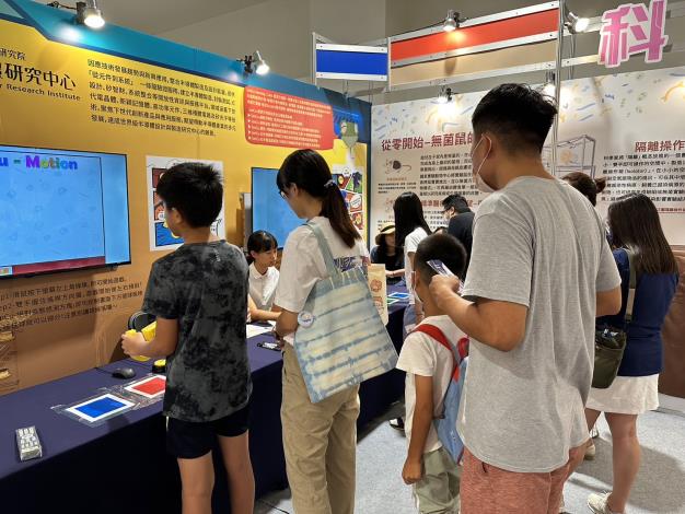 鄭局長說,104個科教攤位展示非常精采,達到寓教於樂的效果;例如「AI智能辨識機器人」用AI辨識人的微笑、生氣,看到小朋友對著機器人又笑、又生氣,非常有趣;「科學家的多重宇宙」則利用線索解謎,打開科學寶箱,過關非常有成就感。