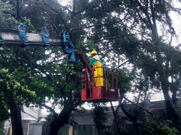 為因應凱米颱風帶來強風及豪大雨造成本市新營及永華體育園區多處積水及樹木傾倒,臺南市政府體育局緊急動員同仁及廠商處理積水及樹木傾倒等災損狀況,體育局除於颱風期間緊急處理將會影響道路通行傾倒樹木支解,提供用路人車安全外,昨日(27日)一大早就全力開始忙著清理園區環境,務求各項體育設施及園區步道回復,今日(28日)已初步恢復兩大園區環境,提供市民優質安全的運動空間。