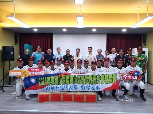 2024年美國小馬聯盟小馬級世界青少棒錦標賽將於今(113)年8月9日至14日在美國賓州華盛頓市登場,本屆賽事將由臺南市代表隊代表我國及亞太區國家參賽,與世界各區國家代表隊一同角逐世界冠軍榮耀,臺南市代表隊是由民德國中負責籌組,由民德國中、崇明國中、安順國中及金城國中等15名選手組成參賽,自獲得2024年美國小馬聯盟小馬級(13-14歲組)亞太區青少棒錦標賽冠軍,從菲律賓回國後即馬不停蹄投入訓練,黃偉哲市長特於今(30)日親臨民德國中,除了致贈慰勞品予代表隊教練與球員,勉勵臺南小將們全力以赴帶回金盃,也特別感謝聯鋼營造工程股份有限公司、東達數位印刷有限公司及茶之魔手贊助出國經費,期許臺南小將在國際棒壇上發光發亮,為國爭光。
