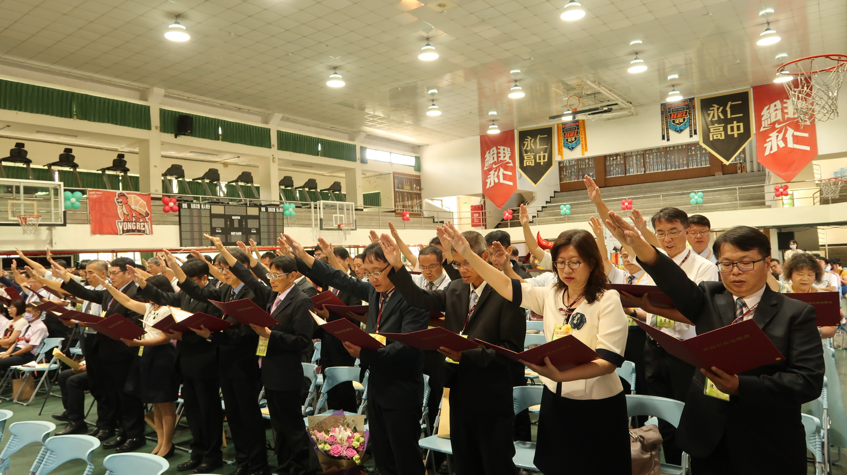 本次典禮由復興國中校長陳文財(連任)、進學國小校長李添旺(調任)、安慶國小校長羅智韋(新任)分別代表連任、調任及新任校長進行就任宣誓,並由主計處副處長蘇茂勝及財政稅務局專門委員陳棖福擔任監交人,與在場各界貴賓共同見證教育薪火的傳承與延續。隨後由文化國小許清陽校長代表退休校長致詞,安定國中校長江怡靜代表新任校長致詞。