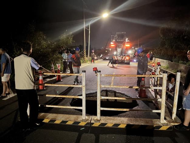 佳里區通往將軍區南24線道路鄰東勢橋位置,市府30日下午獲報發生路基掏空,經工務局、佳里區公所及管線單位確認掏空位置無管線後,緊急處理,於31日凌晨2點左右完成路基填補。俟回填料穩固,將立即回鋪瀝青混凝土。目前採單線雙向通車,行經車輛,請小心駕駛,造成不便請民眾諒解。