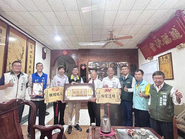 父親節將至,中西區蔡佳甫區長代表黃偉哲市長、民政局姜淋煌局長與多位民意代表,於8月1日親自向今年接受市政府表揚的晶鑽爸爸-光賢里王信雄先生致贈紀念匾額,表達祝賀之意。