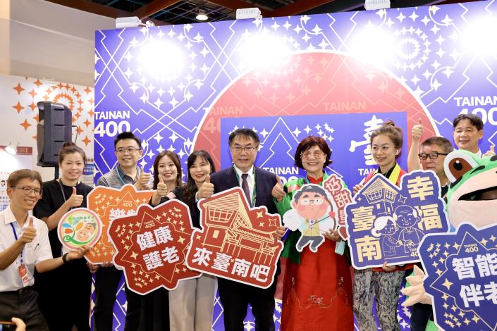 臺灣即將邁入超高齡化社會,臺南市政府今(2)日參加於台北世貿一館舉辦的第一屆「高齡健康產業博覽會」,由社會局、衛生局、教育局、交通局以及體育局等5個局處設置臺南城市館專區,並邀約11家高齡健康產業廠商擺設攤位,展現臺南市高齡友善特色。臺南市長黃偉哲特地出席開幕式,他表示讓長者活得健康、過得開心是南市致力的目標,歡迎民眾前來參觀臺南城市館,了解臺南高齡健康政策與服務,與公部門一起努力,實現銀髮幸福生活。